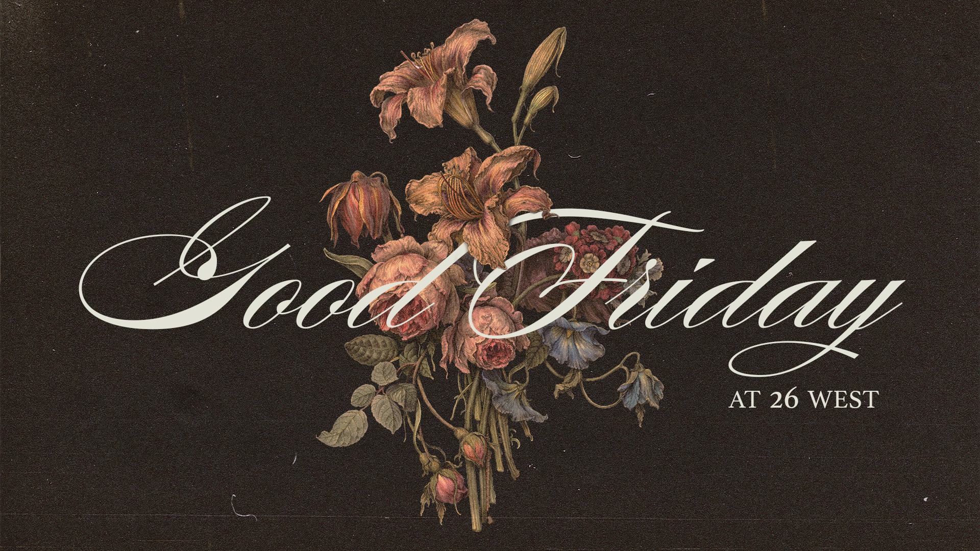 We will gather with 26 West Church for a Good Friday service at 26 West's location on Friday, April 3, at 6pm. This will be a solemn and reflective time to sit with the sorrow of Jesus' sacrifice and the weight of the cross. Join us as we remember the depth of His love through His suffering and death.